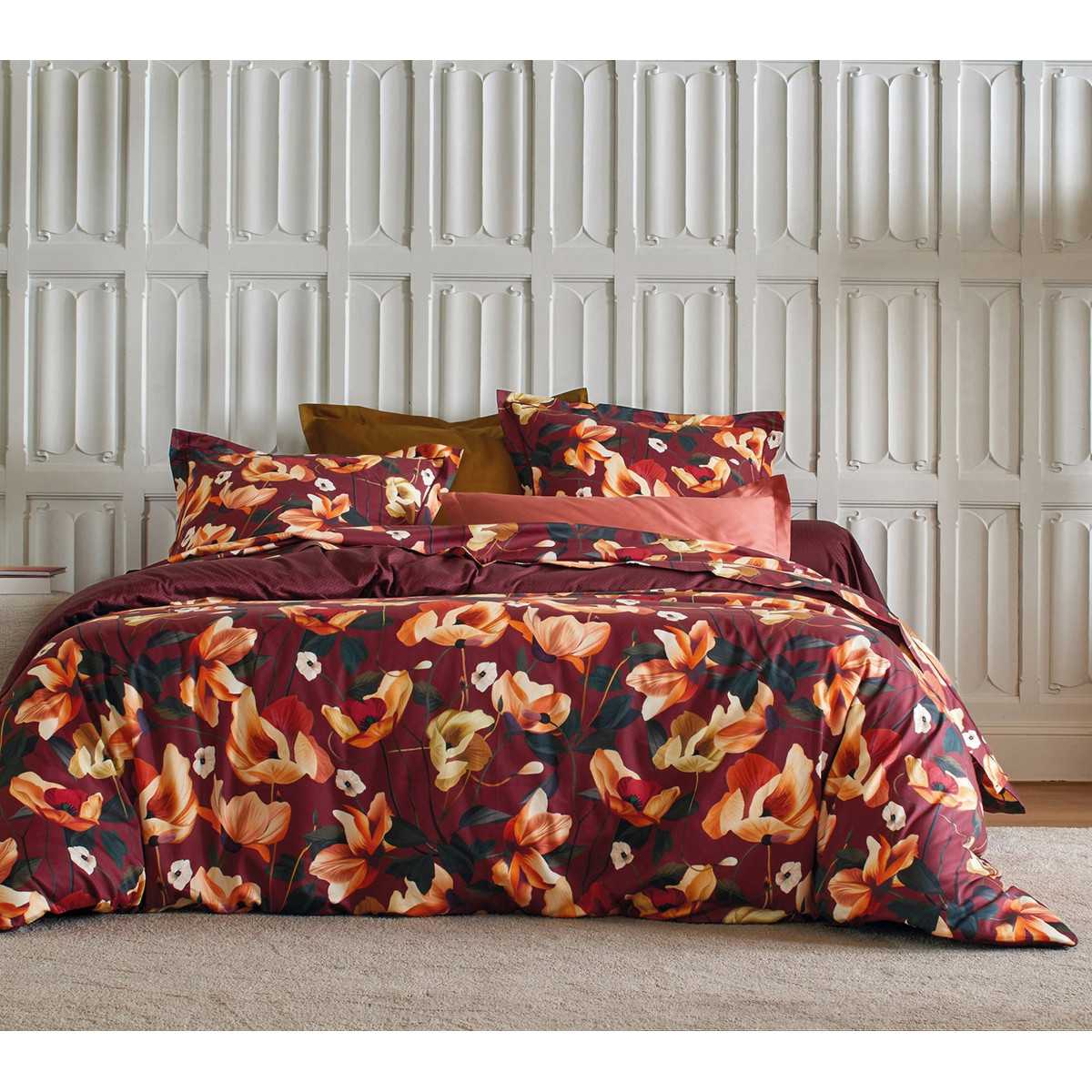 Dieser 140 x 200 cm große Bettbezug besteht aus 100 % langstapeliger, gekämmter Baumwolle (120 Fäden/cm²). RHAPSODIE Garnet zelebriert die Strahlkraft von Blumen mit moderner Eleganz.