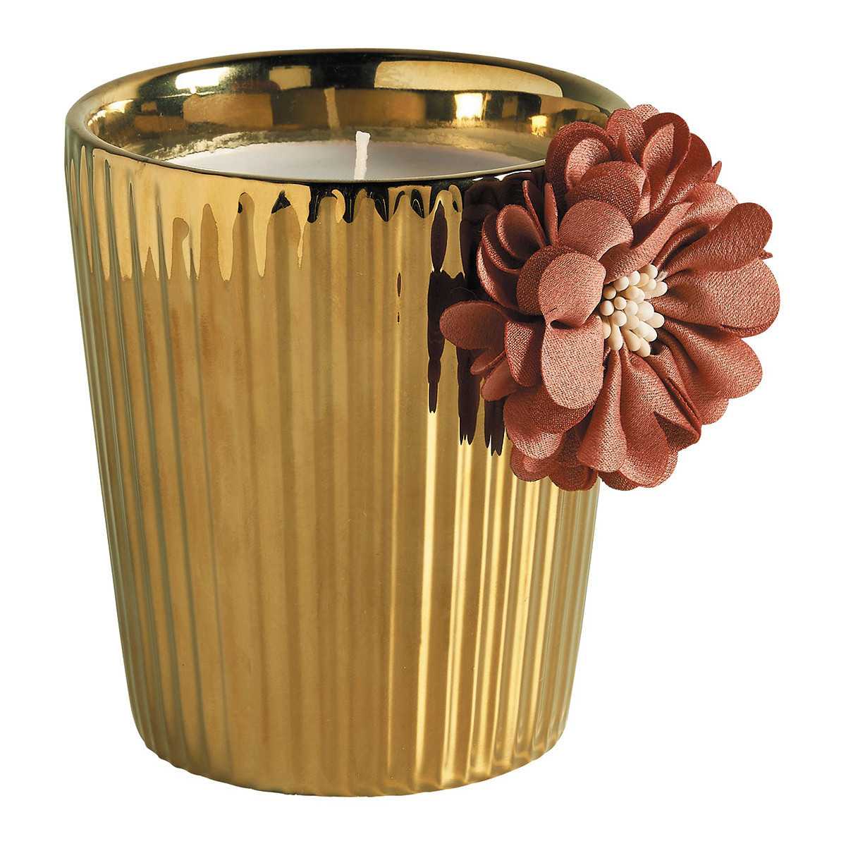 Materialien des Kerzenhalters: Keramik, Stoffblume, Docht aus 100 % Baumwolle