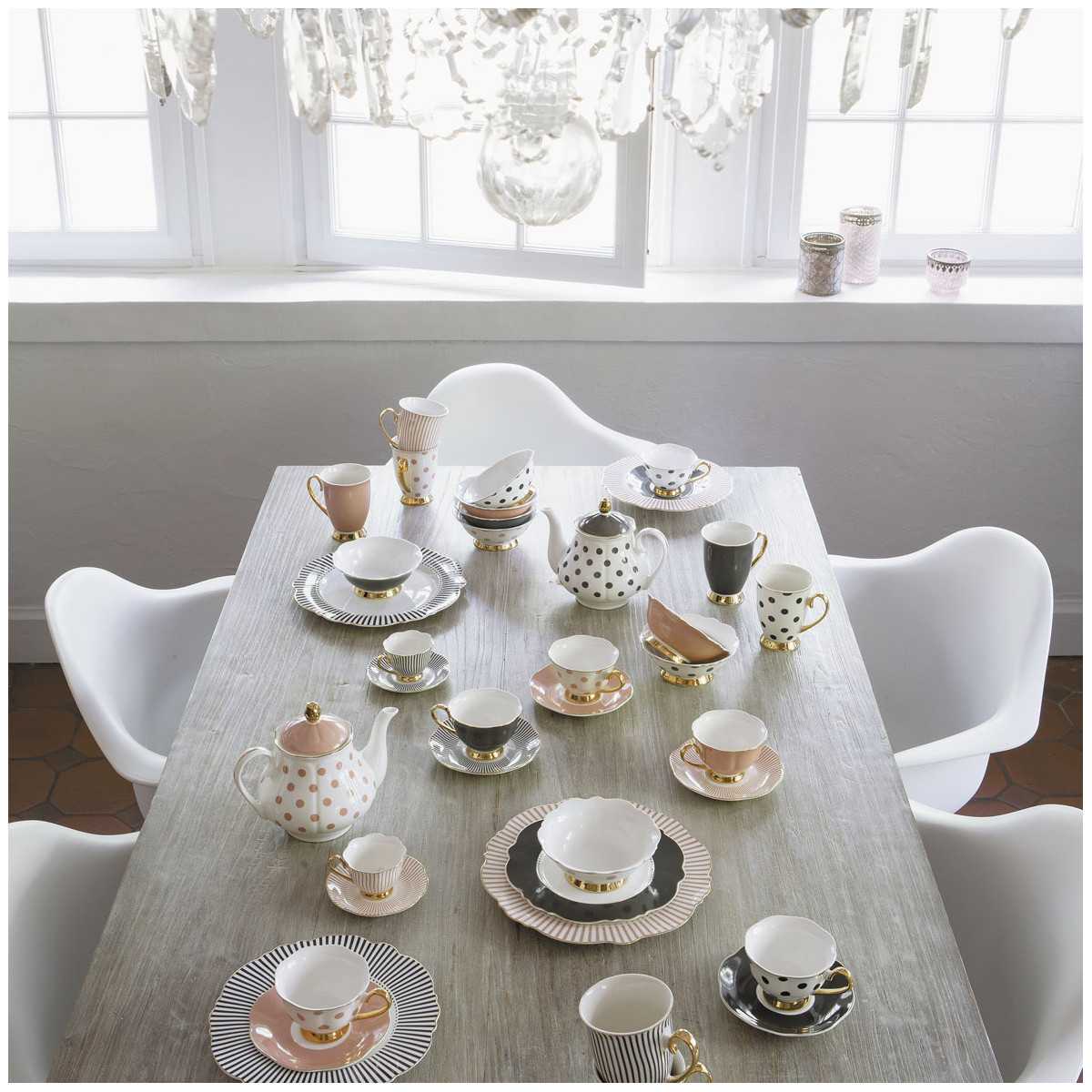 Die emblematische Geschirrlinie Madame de Récamie wird mit neuen Produkten mit eleganten klassischen Linien angereichert und erhält eine neue graue Erbsendekoration, um nach Belieben mit den feinen Streifen bestehender Produkte zu verheiraten.