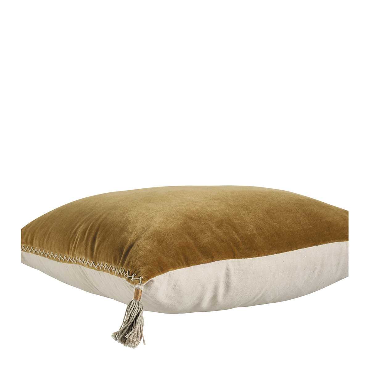 Additional information Exterior: - Face: 100% cotton velours - Two: 88% cotton and 12% linen Interior: 100% polyester Dimensions: 40 x 30 cm Coussin déhoussable. Garnissage incl. Piqué main.