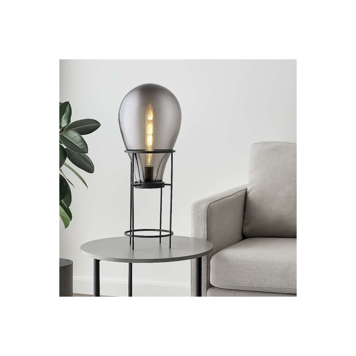 A decorative light fixture with a contemporary and refined design, enhanced by an elegant smoked glass finish. It diffuses a soft and warm light, ideal for creating a cozy and sophisticated atmosphere in a living room, bedroom, or modern living space. A designer lamp that brings character and elegance to your interior decor.