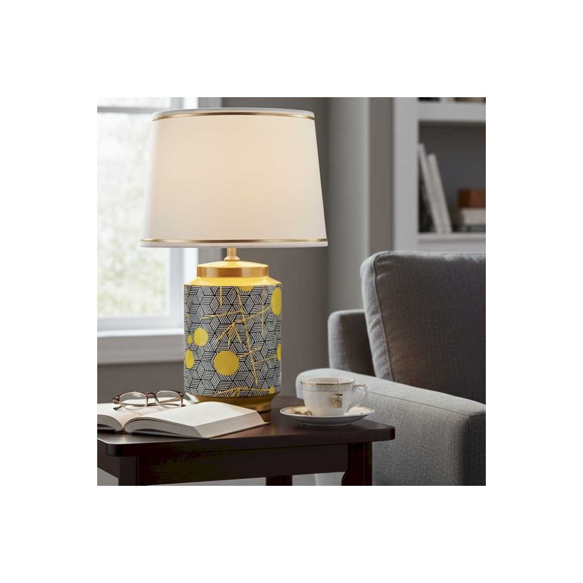 Referencia C2389 Especificaciones técnicas Material Cerámica Largo: 28 cm Ancho: 28 cm Alto: 105 cmRequiere una bombilla E27 (no incluida) 1 Pantalla negra y dorada: L: 40 × An: 25 × Al: 40 cm 1 Lámpara de rayas negras y doradas: L: 28 × An: 28...