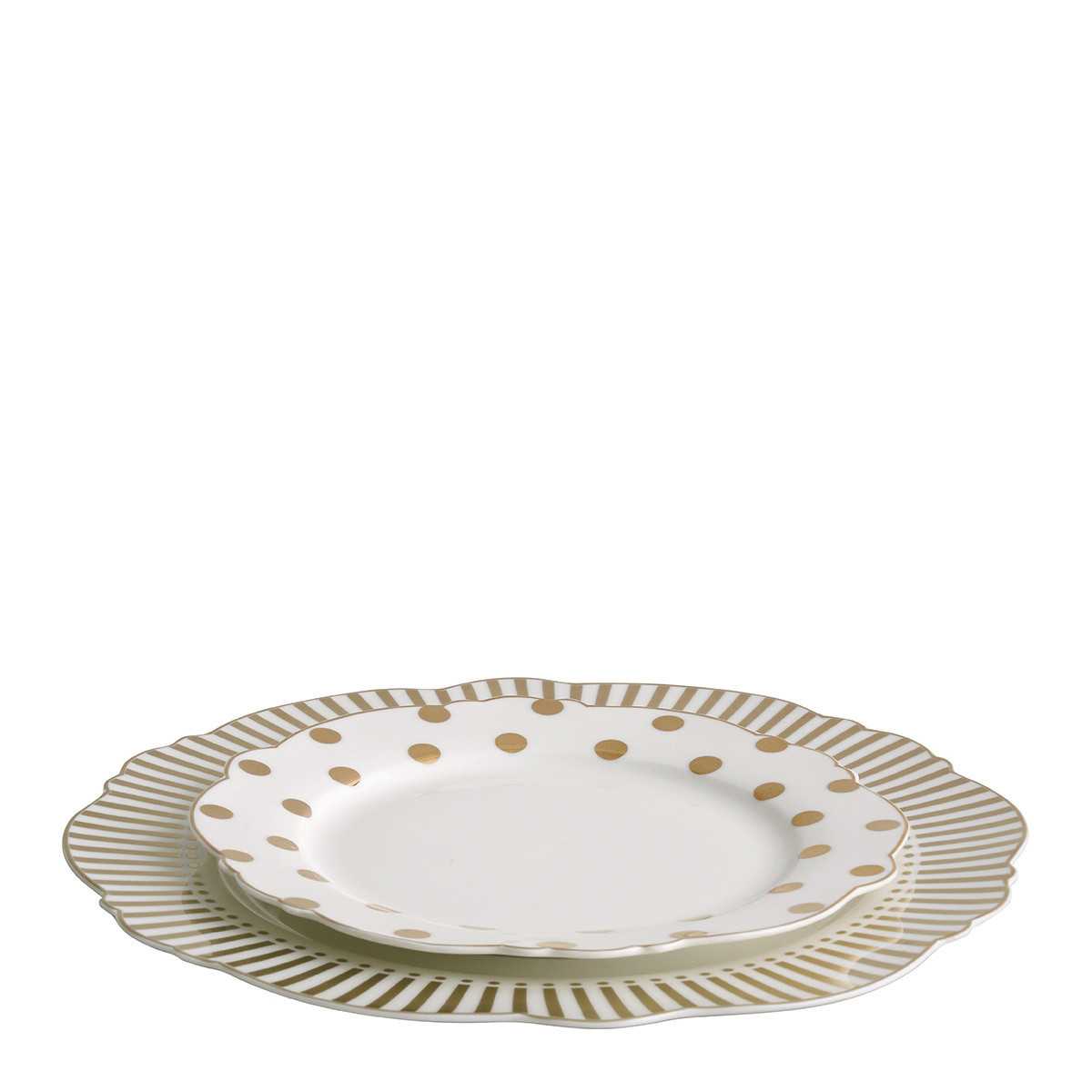 La emblemática vajilla Madame de Récamier está adornada con elegantes líneas dorado, que le dará un toque festivo a tu interior.
