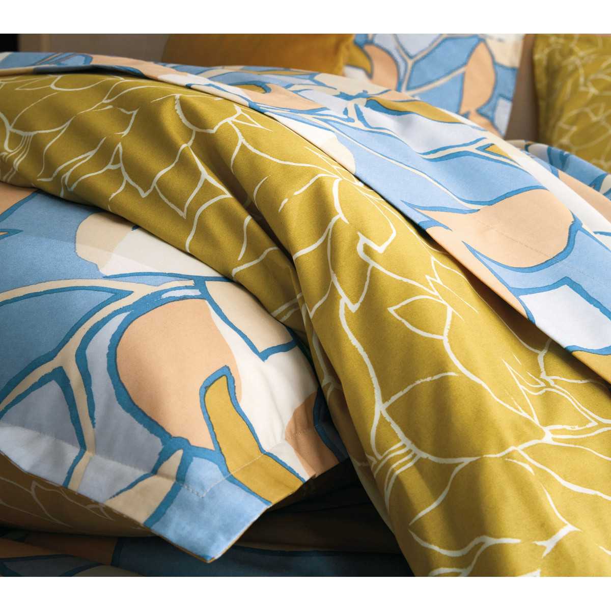 La funda nórdica Utopia Sun celebra la belleza de las formas y los colores a través de un estilizado motivo floral, estampado en percal de algodón suave y ligero.