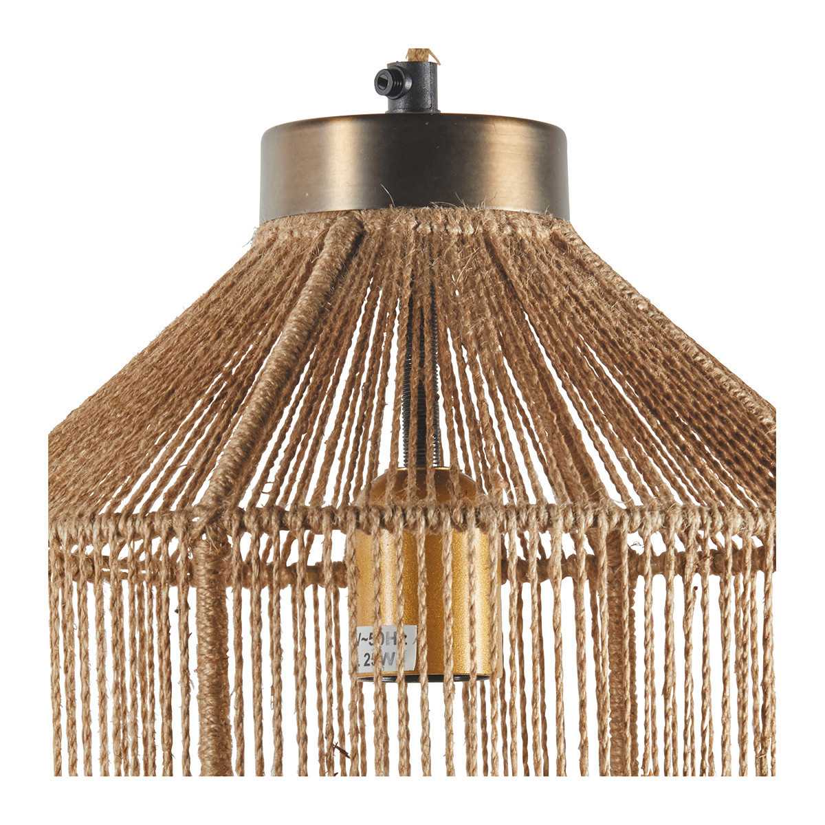 Información adicional Composición: yute, hierro Tipo de bombilla: E27 Potencia máxima: 40 W Dimensiones: ⌀ 90 x 21 cmCable eléctrico negro.
