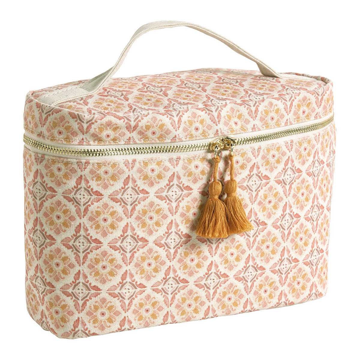 Accesorio esencial de sus viajes, este tocador luce una decoración Elegante y refinado, inspirado en los azulejos tradicionales portugueses. Fácil Para deslizarse en el equipaje, le permite llevar a todas partes con usted tu maquillaje, tus joyas o tus productos de belleza.