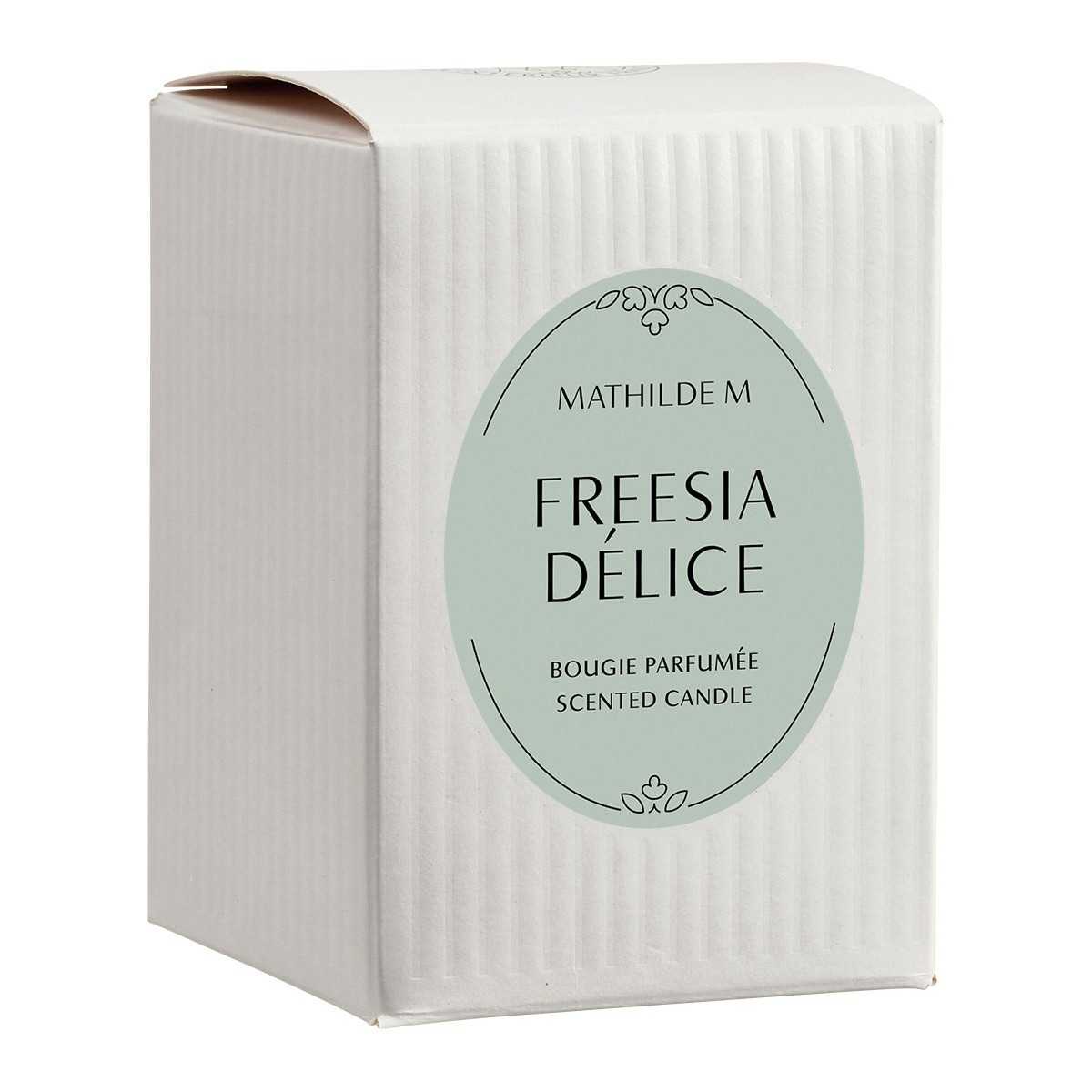 Découvrez le tendre et suave parfum Freesia Délice, qui révèle des accents pétillants de fruits rouges sublimés par la fraîcheur d'un bouquet de freesias et de roses, avant de s'achever dans un voile délicat de muscs blancs.