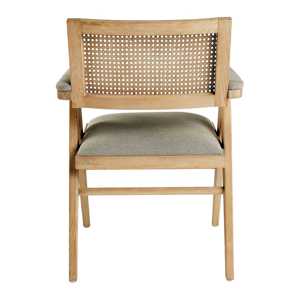 Son assise en lin et son dossier en cannage en font une pièce indémodable, qui trouvera sa place dans le salon ou autour d'une table.