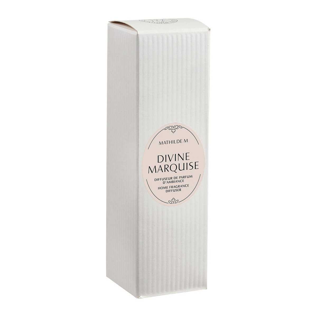 Objet de décoration raffiné, ce diffuseur de parfum d'ambiance Mathilde M. parfume en continu votre intérieur avec Divine Marquise, une senteur addictive aux délicieuses notes de pralines, enveloppées d'un envoûtant accord oriental d'ambre et patchouli.