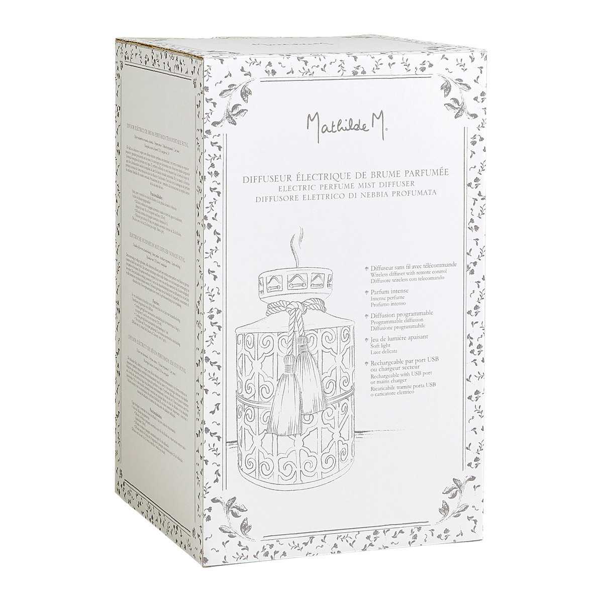 Ce diffuseur est à utiliser uniquement avec les sur-concentrés de parfum d'ambiance Mathilde M. ou des huiles essentielles. Remplir le réservoir d'eau avant d'ajouter quelques gouttes de sur-concentré de parfum d'ambiance ou d'huiles essentielles. Précautions d'emploi Se reporter au manuel d'utilisation à l'intérieur de la boîte avant tout usage.