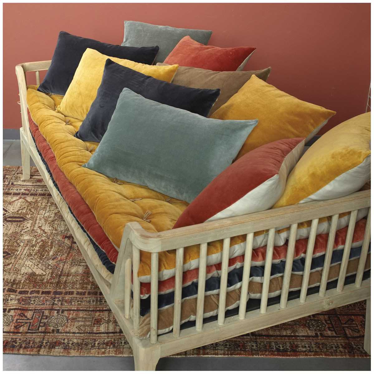 Informations complémentaires Extérieur : - Face : 100 % velours de coton - Dos : 88 % coton, 12 % lin Intérieur : 100 % polyesterDimensions : 180 x 80 cm Piqué main.