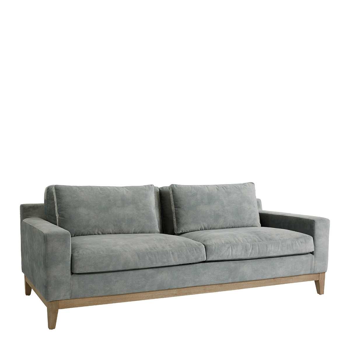 Comfort ed eleganza entrano nel tuo salotto con il divano LEONORE in velluto grigio chiaro.
