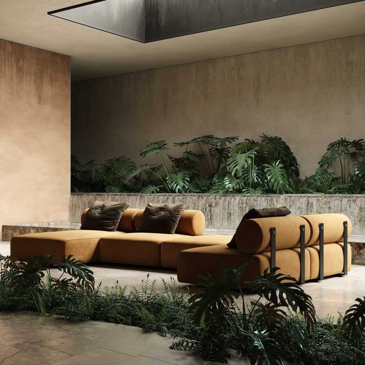 Il sistema di divani modulari ha infinite configurazioni e può essere adattato per soddisfare le esigenze e i gusti del tuo progetto di interior design.