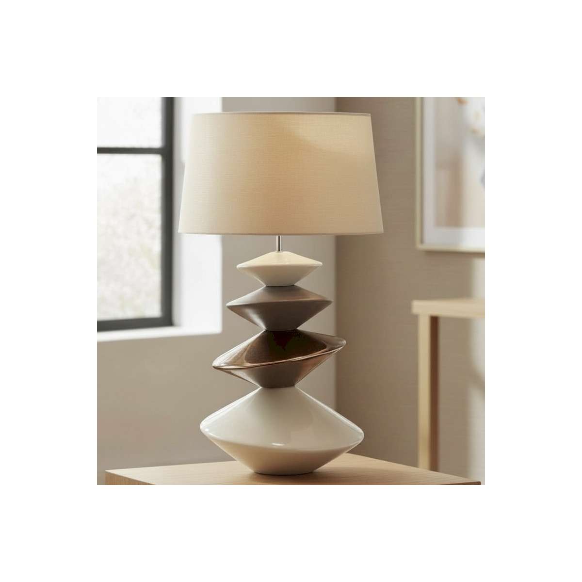 Codice articolo C2388 Specifiche tecniche Materiale Ceramica Lunghezza 35 cm Larghezza 35 cm Altezza 65 cmRichiede una lampadina E27 (non inclusa) 1 Paralume nero e oro L: 35 × P: 25 × H: 35 cm 1 Lampada a righe nere e oro L: 35 × P: 35 × H: 65 cm