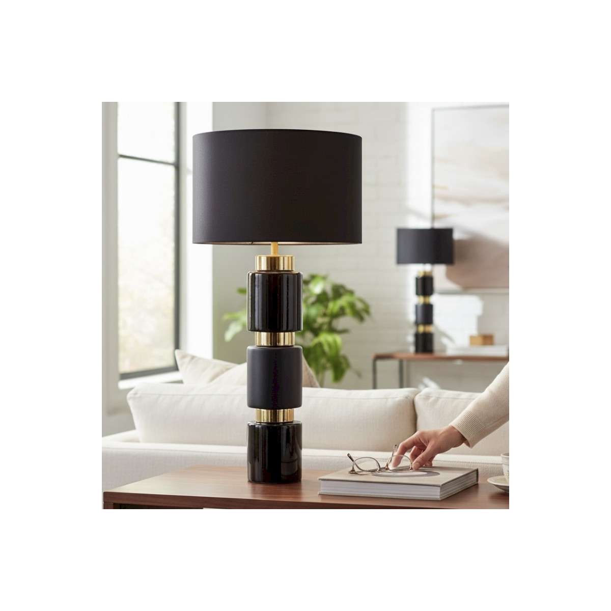 1 Lampada a righe nere e oro: L: 28 × P: 28 × H: 105 cm
