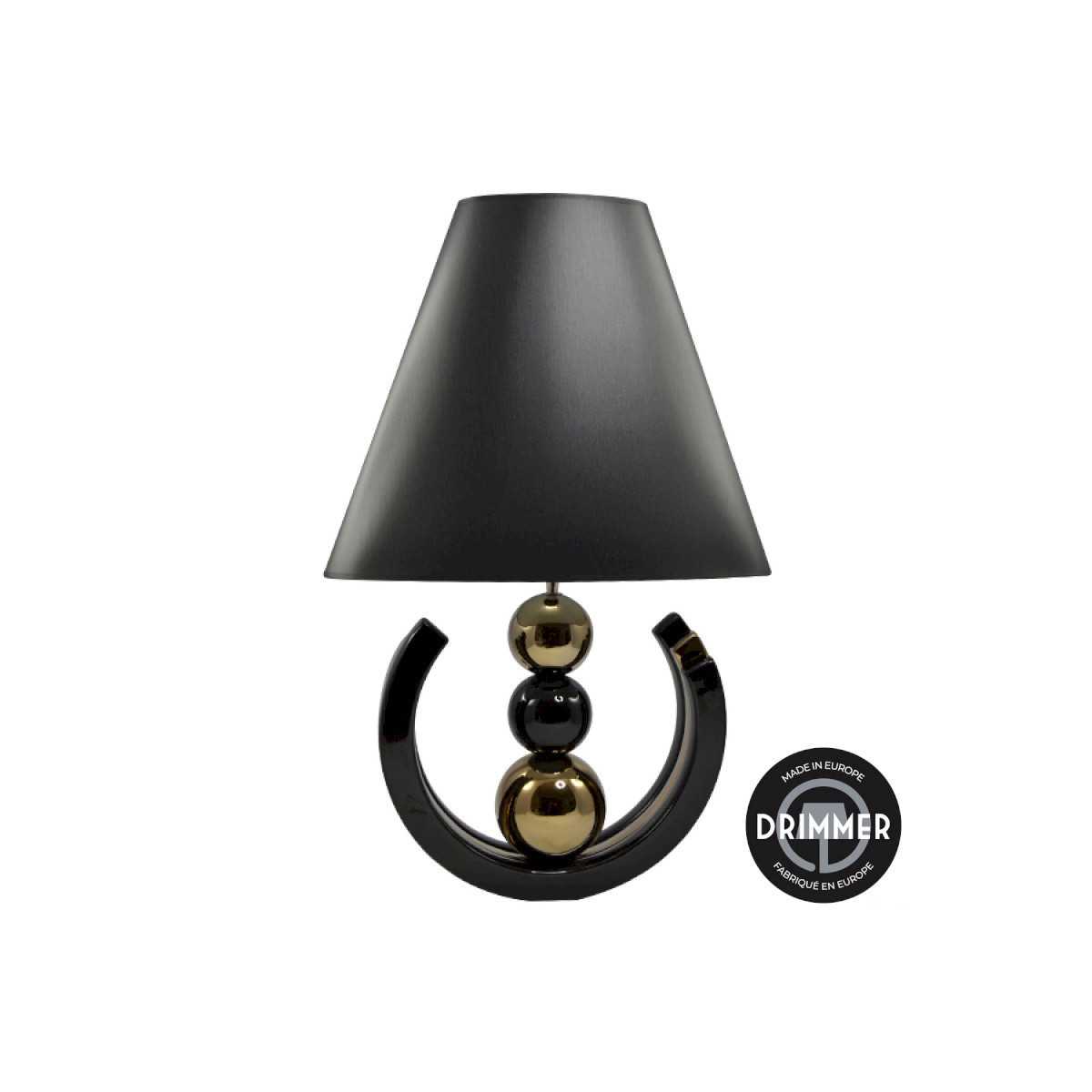 Aggiungi un tocco di moderna eleganza ai tuoi interni con la lampada SUCCESS Nero/Oro da 75 cm di Drimmer, una lampada di design che coniuga perfettamente raffinatezza e originalità. La sua base nera opaca, abbinata a dettagli dorati, offre un raffinato contrasto, ideale per valorizzare un soggiorno, una camera da letto o un ufficio dallo stile contemporaneo.