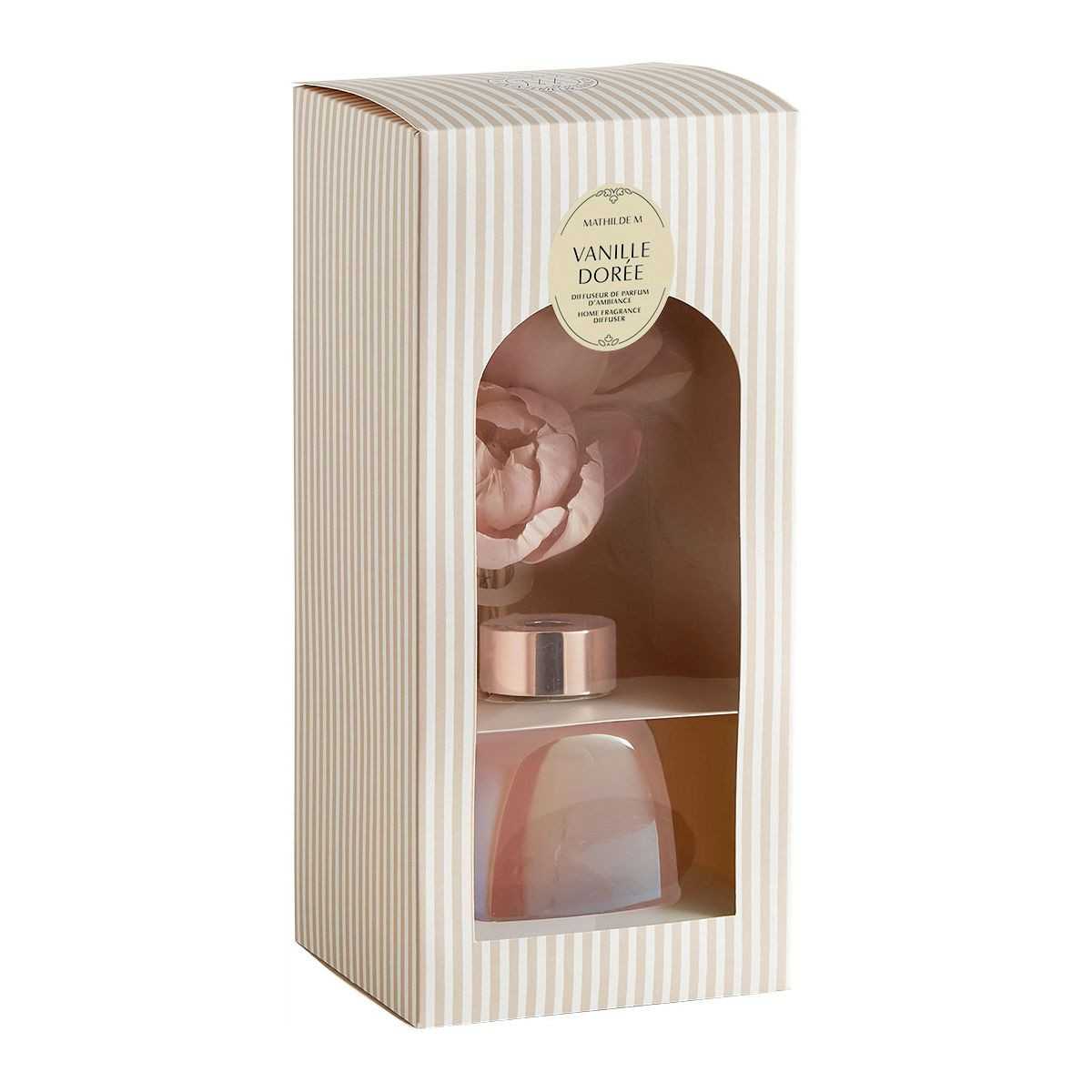 Als een eeuwig boeket verspreidt de Zoete Pioenroos geurverspreider met zijn delicate bloemblaadjes op subtiele wijze zijn geurspoor en transformeert elke kamer in een oase van rust. De zacht getinte bloemen en de iriserende flacon vangen het licht op een sierlijke manier en brengen een vleugje poëzie en elegantie in uw huis. De natuurlijke rotan rietjes in de flacon absorberen de geur door capillaire werking en verspreiden deze geleidelijk in de lucht. Deze geurverspreider parfumeert een middelgrote kamer gedurende meerdere weken.