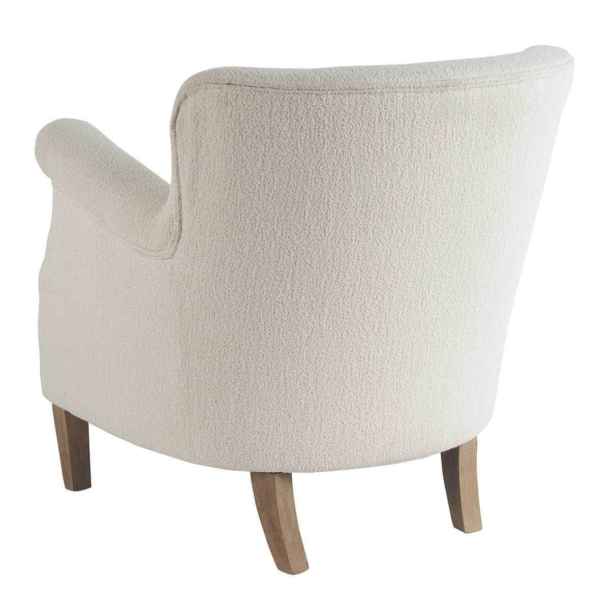 Son tissu bouclette lui apporte une touche chaleureuse et originale, qui se mariera facilement à tous les styles de décoration. Sa grande assise et ses accoudoirs arrondis en font un siège généreux et confortable.