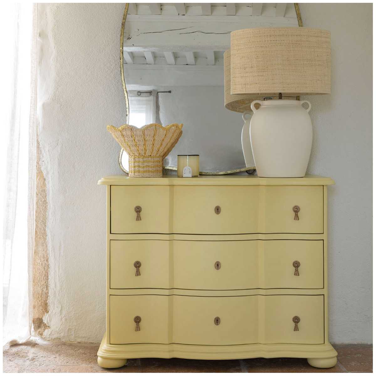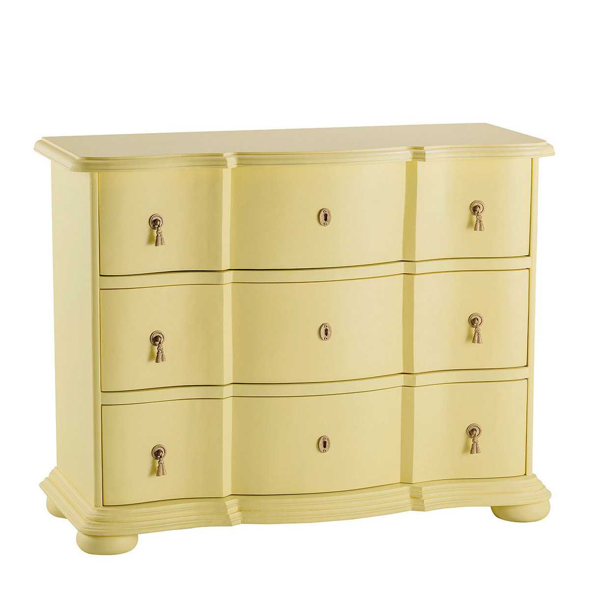 Met zijn delicate pastelgele kleur en verfijnde design brengt de ladekast CARLOTTA een elegante toets in uw interieur.